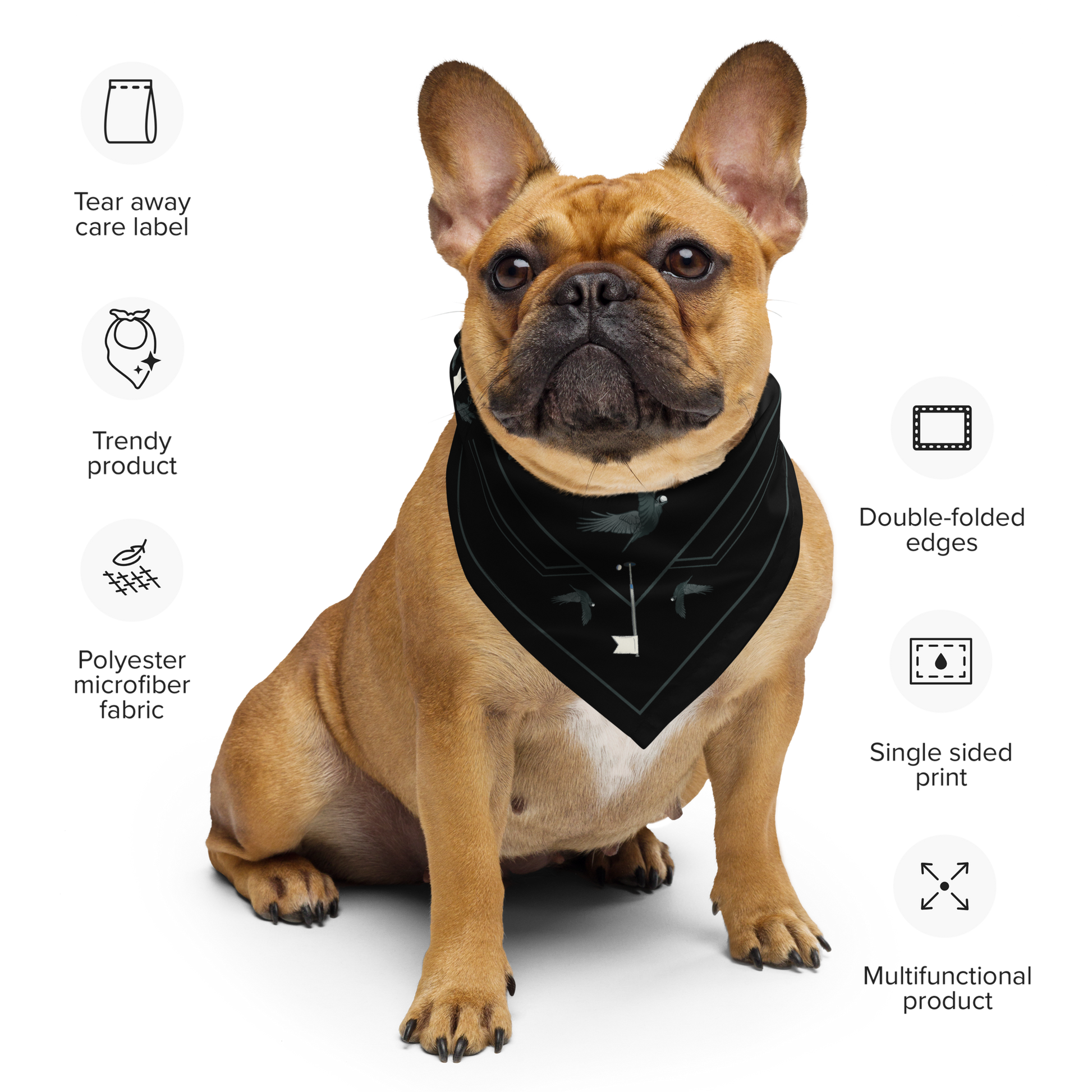 Get ready to make a statement with this all-over print bandana with illustrations featuring ravens, unbelievably intelligent and excellent hunters which can mimic human voices and can even recognize faces. Mix up your outfits by using this as a headband, necktie, or armband. In fact, why not get a second bandana to match your pet? Grab a few and hit the streets in style!