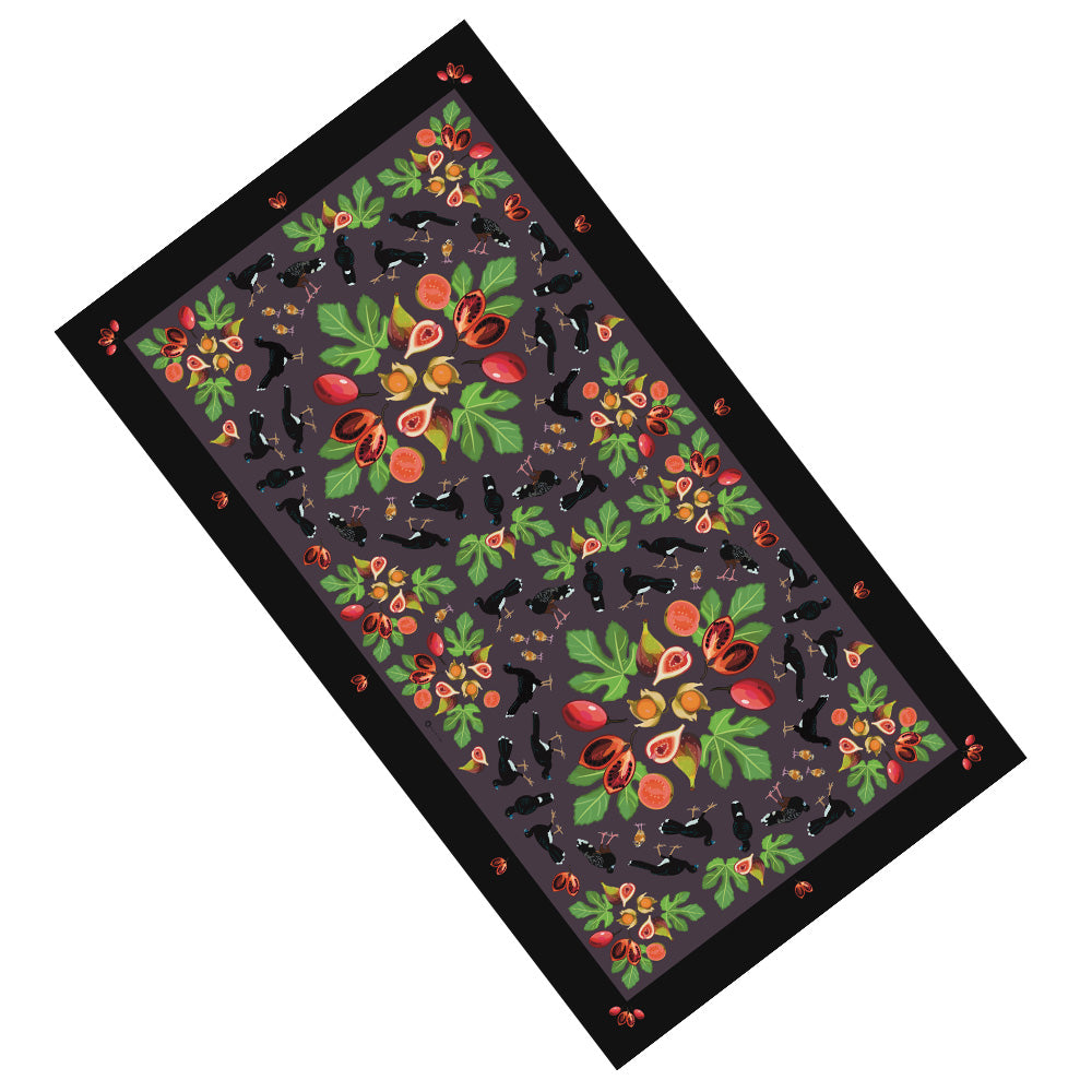 The perfect companion to your sun-kissed adventures this summer: our exquisite sarong decorated with beautiful illustrations of the blue-billed curassow. Scientifically known as the Crax alberti, this bird is an endangered species. Today, the entire wild population occurs in just a few small remnant areas of tropical lowland forest. They are lovely birds, sharing food with each other as they scavenge the forest floor.