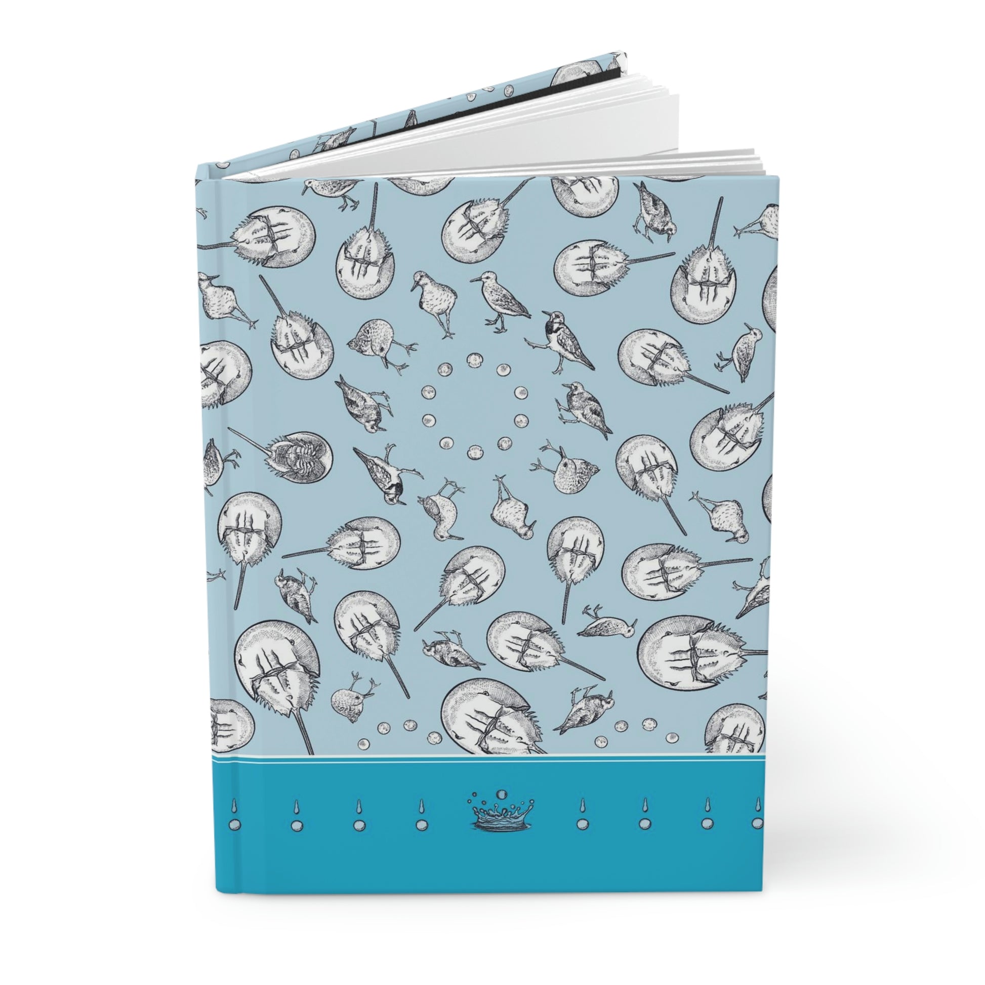 If you're someone who loves to write, sketch, or journal, then this is the perfect product for you. Our journal measures 5.75 inches by 8 inches, making it small enough to take with you wherever you go, yet large enough to provide plenty of space for your creative expression. The journal is filled with 150 lined pages, providing plenty of room for all your ideas, notes, and musings. The cover of our journal is matte laminate coated, giving it a sleek and professional look. It is decorated with illustrations of the miraculous horseshoe crab, a creature older than the dinosaurs. Birds like red knots, semipalmated sandpipers and ruddy turnstones rely on the eggs of this ancient species to fuel their Herculean migrations. The medical industry also loves horseshoe crabs for their astounding blue blood, which can detect toxins.