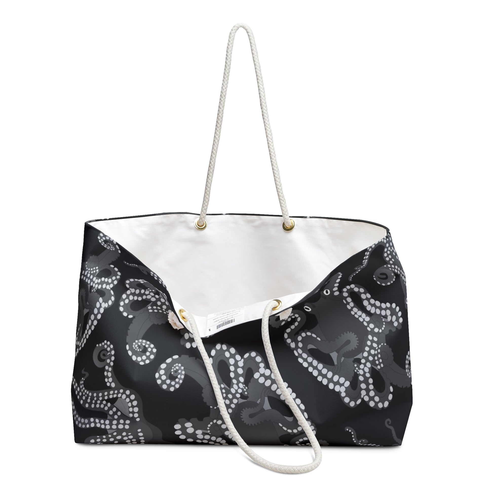 Octopus in Black and White Weekender Bag - Nautical Travel Tote