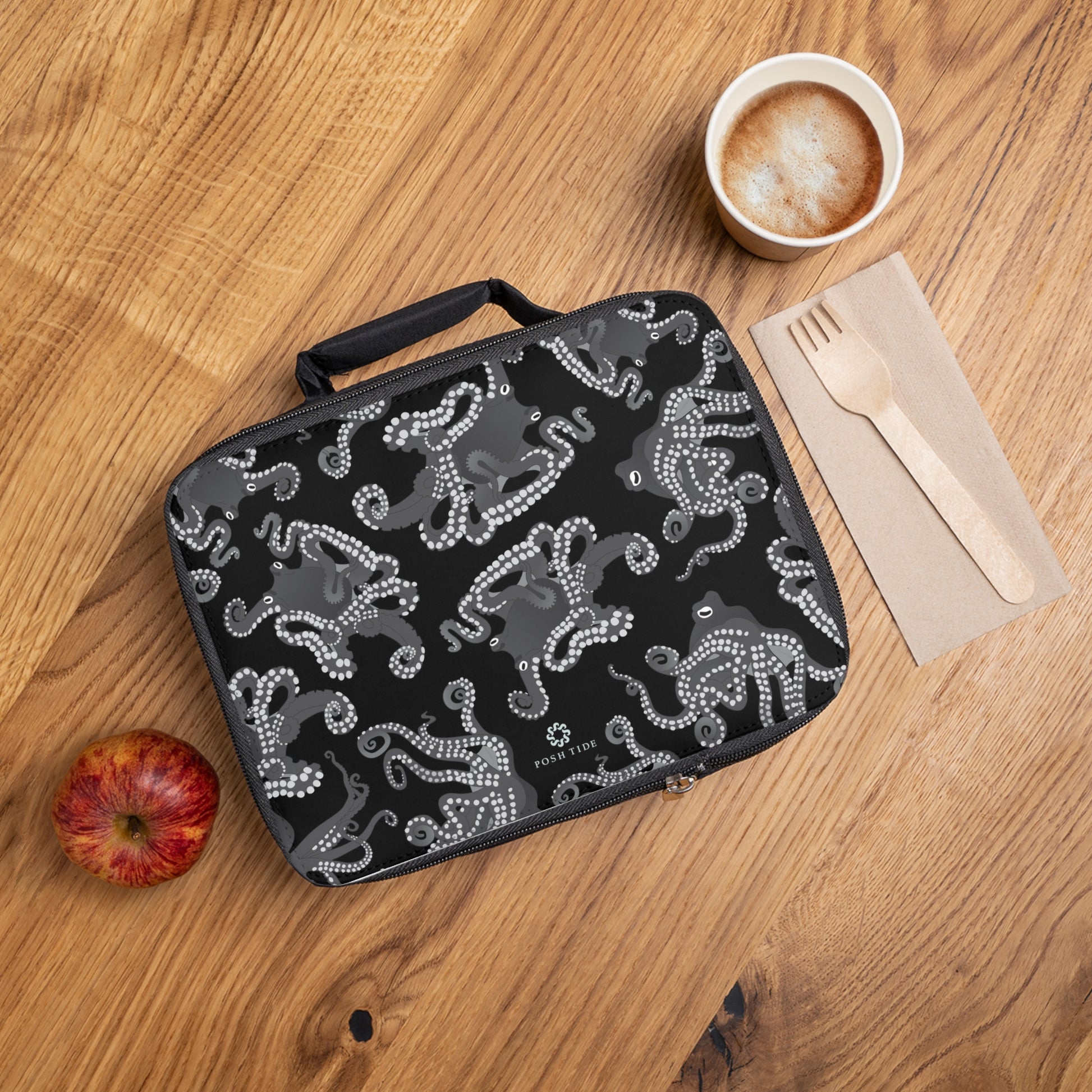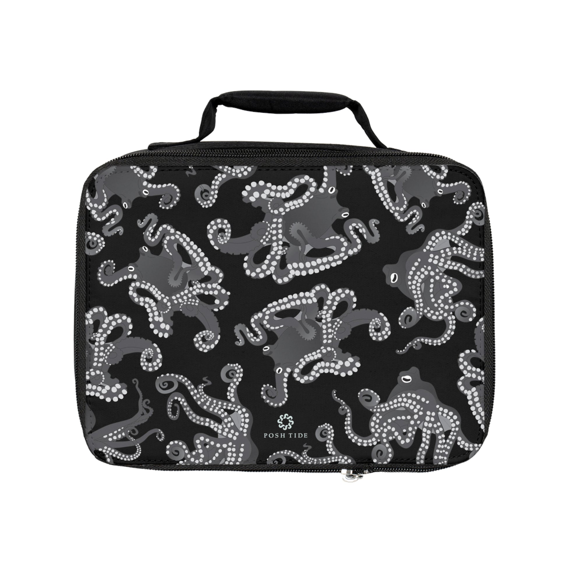 Nutritious meals look so nice in Posh Tide's nature-inspired lunch bags designed for both adults and kids. This one features The octopuses, which have 8 arms each with their own mini-brain! They can even taste with their suction-cupped tentacles. Featuring a sleek zippered closure, a carrying handle, and crafted from resilient polyester fabric, this lunch bag is designed for daily enjoyment. Interior can easily be wiped clean.