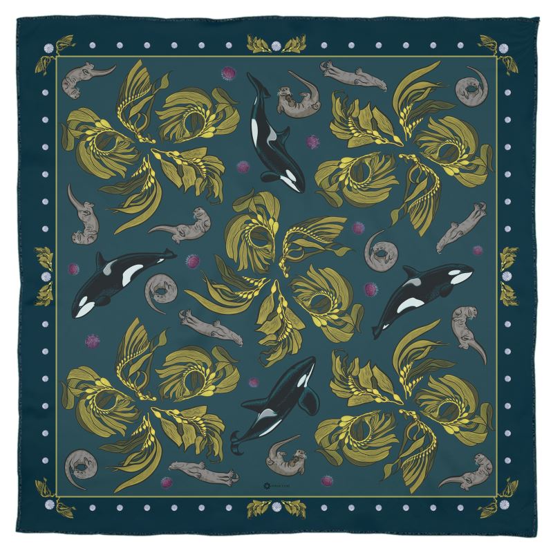 Our silk scarves are the perfect accessory to add a touch of elegance to any outfit. With beautiful illustrations of the watery kelp forests and the keystone species that keep this beautiful ecosystem in balance printed on the finest silk, these scarves are not only a fashion statement but also a work of art. The soft, luxurious feel of the silk against your skin will make you feel like a queen, while the vibrant colors and stunning imagery will turn heads wherever you go. Whether you're dressing up for a special occasion or just adding a finishing touch to your everyday look, these scarves are sure to make you feel confident and stylish. Also available in Mulmul muslin, a soft fabric with a looser weave.
