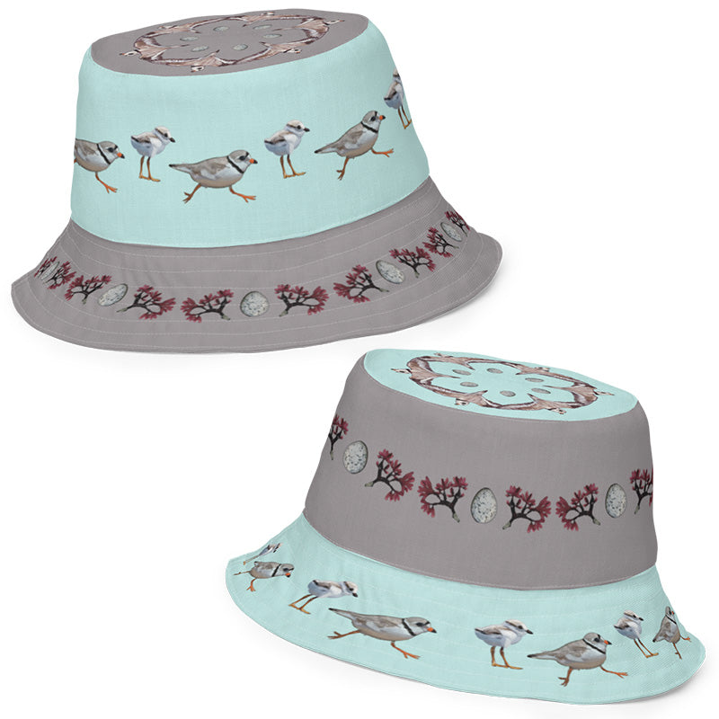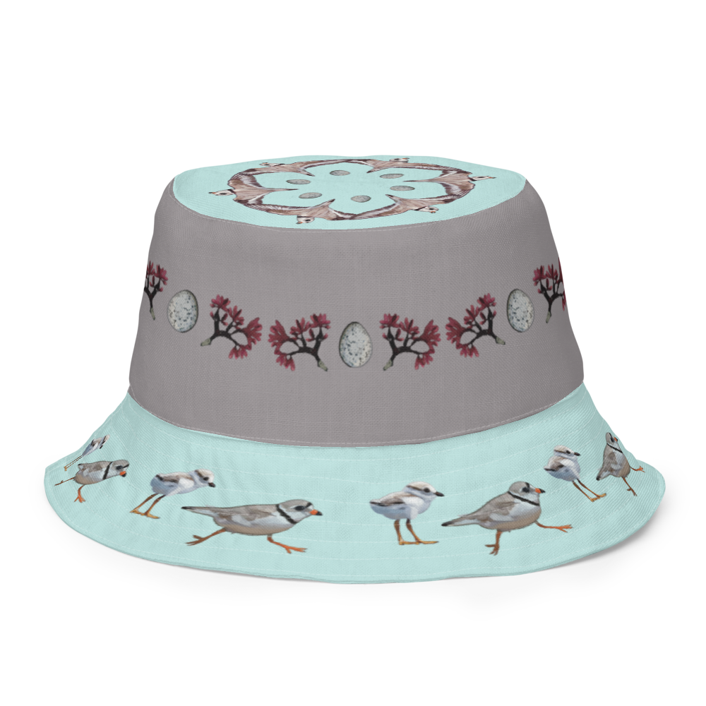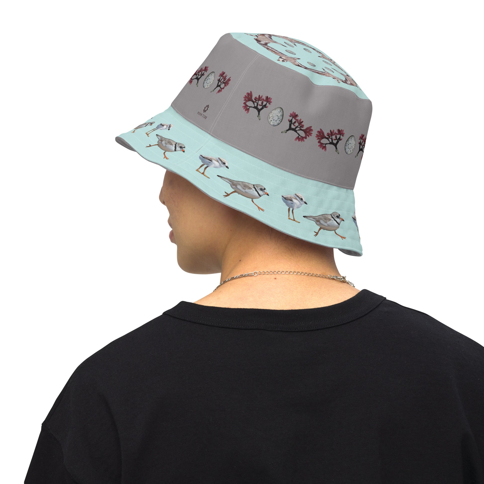 This reversible bucket hat features piping plovers (Charadrius melodus), which are delightful shore birds that run in bursts to feed on small creatures where the waves crash along the shoreline. Their small eggs visually blend into their sandy environments. Sadly, they are now endangered. This hat can be worn on both sides, making it easy to match with different outfits. Made of breathable premium fabric, this hat will become your go-to streetwear accessory.