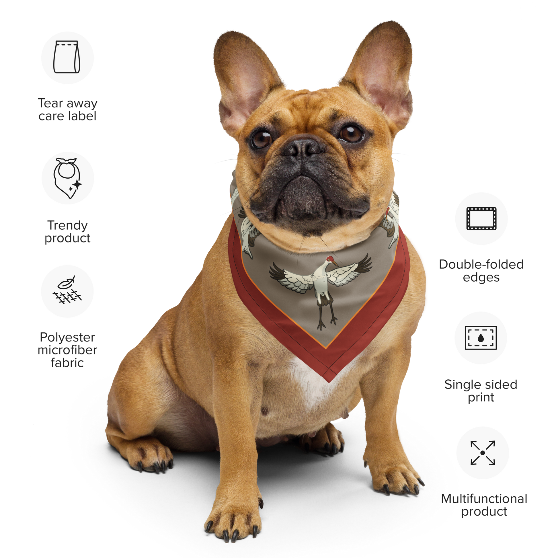 This square bandana is decorated with illustrations inspired by dancing sandhill cranes. They throw their wings in the air like they just don't care to find a mate. Mix up your outfits by using this as a headband, necktie, or armband. In fact, why not get a second bandana to match your pet? Grab a few and hit the streets in style!