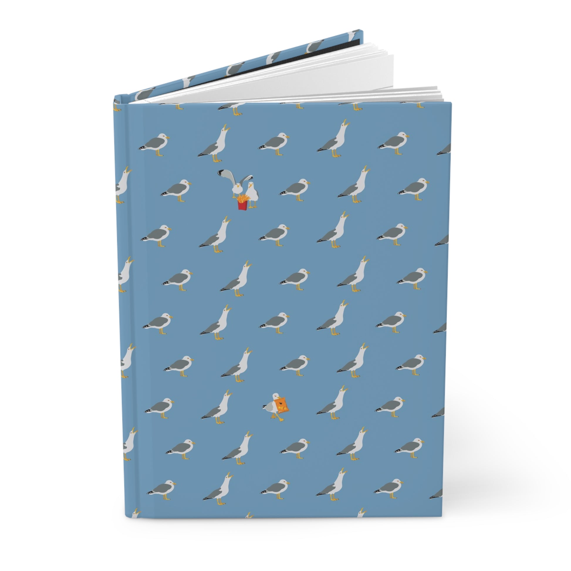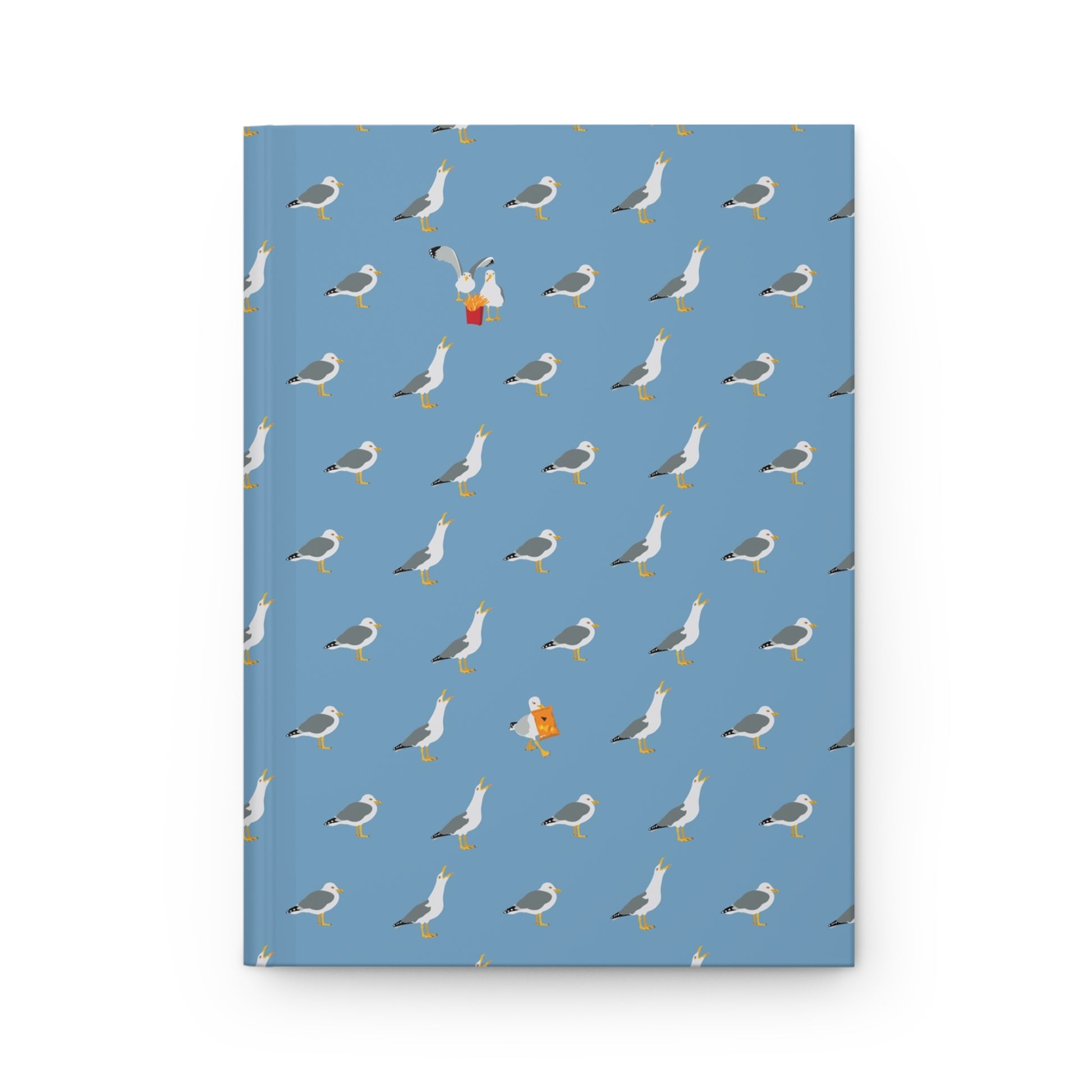 Our journal measures 5.75 inches by 8 inches, making it small enough to take with you wherever you go, yet large enough to provide plenty of space for your creative expression. The journal is filled with 150 lined pages, providing plenty of room for all your ideas, notes, and musings. The matte laminated cover of our journal is decorated with illustrations which are a tribute to seagulls, masters of the sky and scavengers extraordinaire. With the finesse of a toddler at a buffet, they have perfected the art of swooping in to snatch a sandwich right out of your unsuspecting hand.