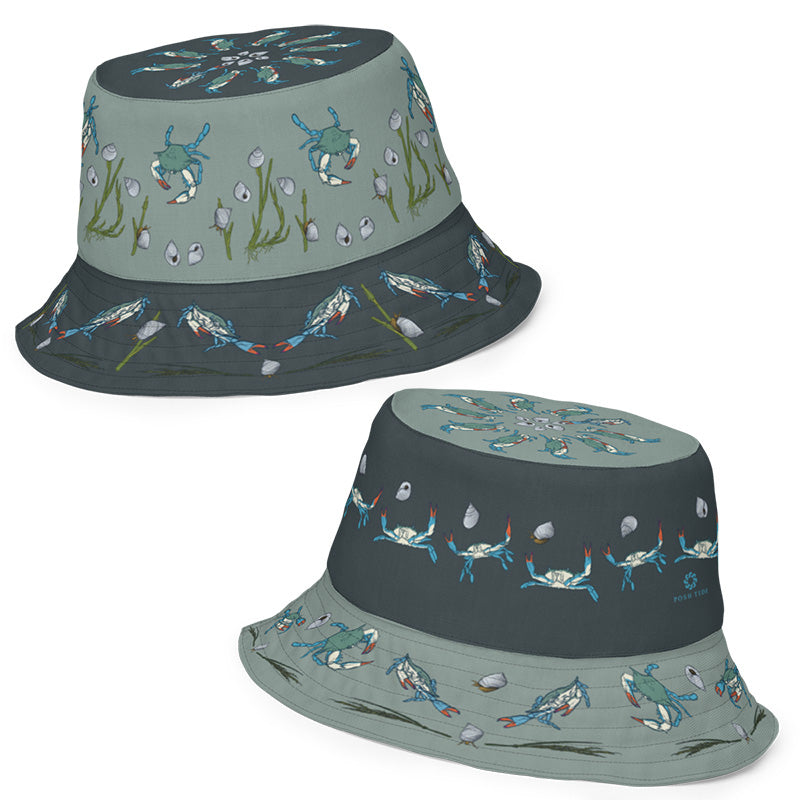This reversible bucket hat features beautiful illustrations of the marsh periwinkle trophic cascade. Believe it or not, these snails harvest fungi on marsh grass. If they have no predators such as blue crabs, they can turn a marsh into a mudflat. The intricate illustrations on this hat capture the essence of this delicate balance. The hat can be worn on both sides, making it easy to match with different outfits. Made of breathable premium fabric, this hat will become your go-to streetwear accessory.